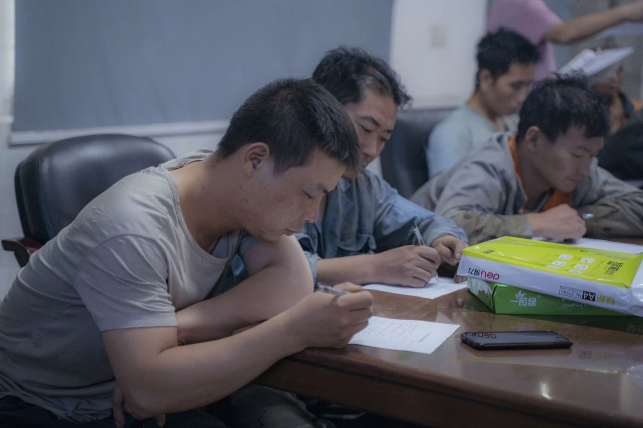 在對(duì)行車、有限作業(yè)空間安全操作標(biāo)準(zhǔn)進(jìn)行細(xì)致學(xué)習(xí)后,全體參會(huì)人員一同觀看安全教育視頻,了解車間作業(yè)中發(fā)生的真實(shí)事故,以及事故帶來的人員財(cái)產(chǎn)傷害。安全生產(chǎn)教育培訓(xùn)的環(huán)節(jié),車間工人進(jìn)行行車安全知識(shí)培訓(xùn)考試。安環(huán)委主任表示,他希望通過現(xiàn)場筆試這一方式,檢驗(yàn)大家此次培訓(xùn)掌握情況,同時(shí)進(jìn)一步加深鞏固安全知識(shí)。